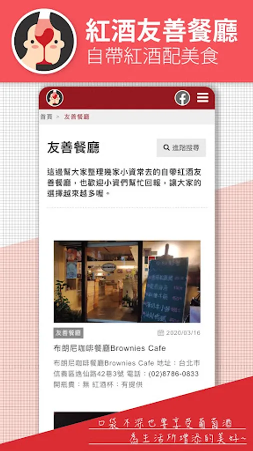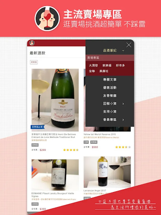 【小資男女的紅酒筆記本】APP 是 Facebook社群【小資男女的紅酒筆記本】 專為喜愛品飲葡萄酒的小資族開發的葡萄酒品飲筆記資料庫,提供台灣主流賣場、超市、量販店葡萄酒品飲筆記的搜尋及篩選服務,為小資族提供最實用的葡萄酒選購指南、品飲專題及紅酒推薦等,口袋不深也要享受葡萄酒為生活所增添的美好,讓小資族用最簡單的方式,以有限的預算買到最好的葡萄酒。