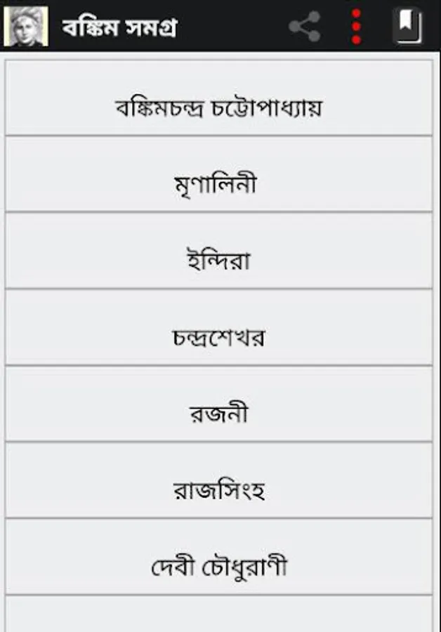 বঙ্কিম চন্দ্র চট্টোপাধ্যায় এর উপন্যাস এবং অন্যান্য রচনাবলী নিয়ে এই এ্যাপটি নির্মিত।