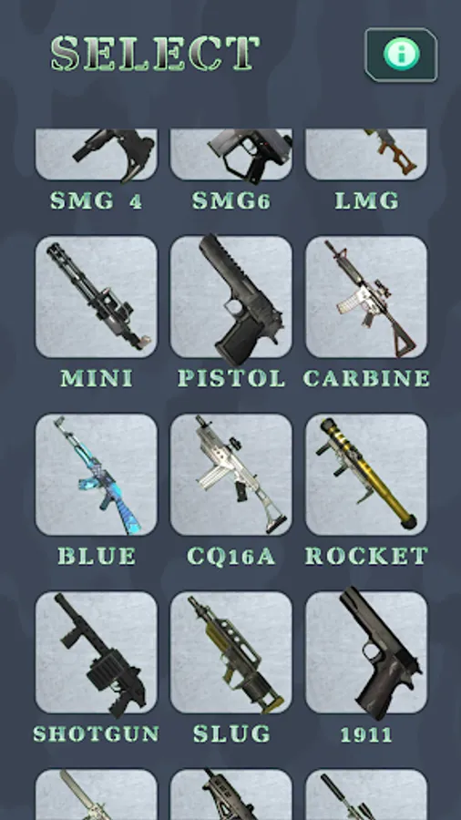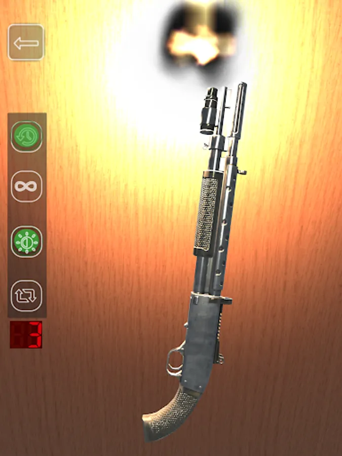 Your own personal arsenal in your pocket, on your phone. You will feel like you are at the gun range with a portable gun collection. Choose your weapon from the main screen and then simply tap to shoot. Shake your phone (or rack like you would a shotgun) to reload your firearm. Loading is optional, you can toggle unlimited ammo by tapping the infinity symbol. Tapping the ammo box will trigger a reload. Authentic looking guns and ammo counts. Current gun selection includes: