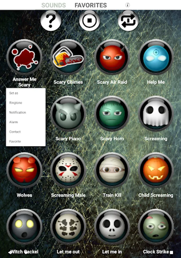Simply tap a scary button to hear sounds that any horror fan will enjoy.