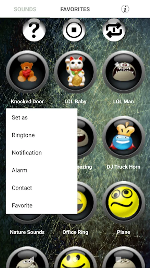 Not only listen to the sound effects but set those sounds as an alarm or assign your favorite to a contact or use it as your notification sound or ringtone.