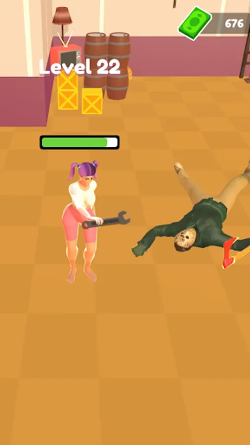 To equip your weapon, you must run to the end of the platform without getting caught. Once you reach your weapon, you will fight the slashers. Be careful and get them. Make the right decisions along the way and take the beautiful girl to the end of the platform. Watch out for obstacles on the way. Don't forget to collect coins. With these coins, you will be able to buy new clothes and hair for the beautiful girl.