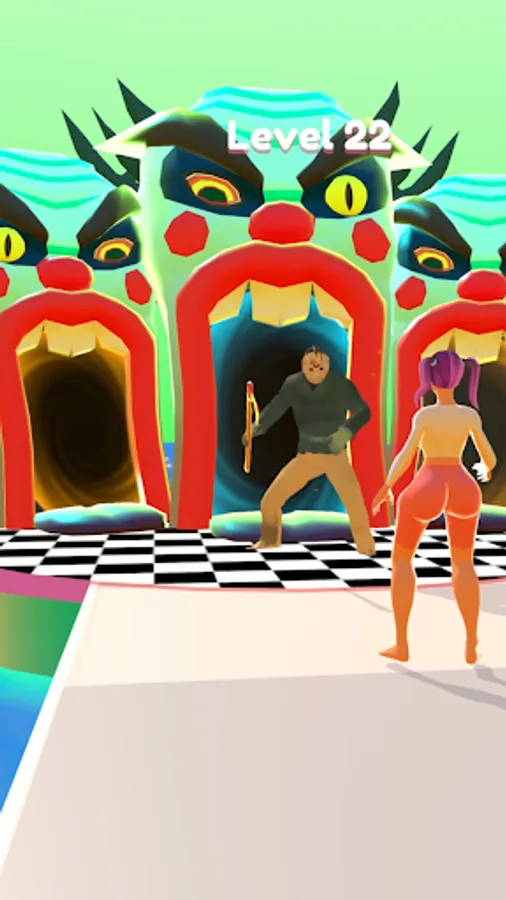 Horror movie characters come out of the clown door trying to catch the hot girl. Overcome the obstacles and save the hot girl. Choose your weapon and start a relentless duel.