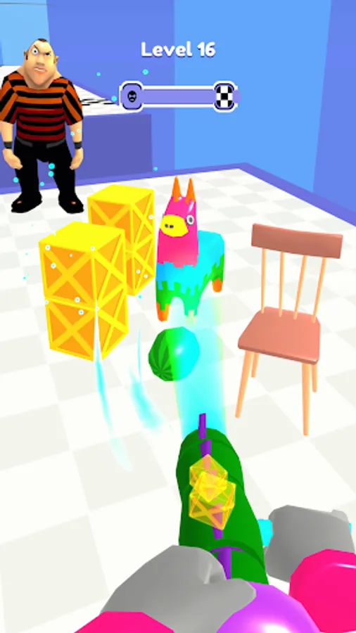 Remember, you have to clear the area quickly by jumping from place to place. Vacuum the television, table, chair, watermelon, barrel, or much more. Then spray with all the might of your weapon.