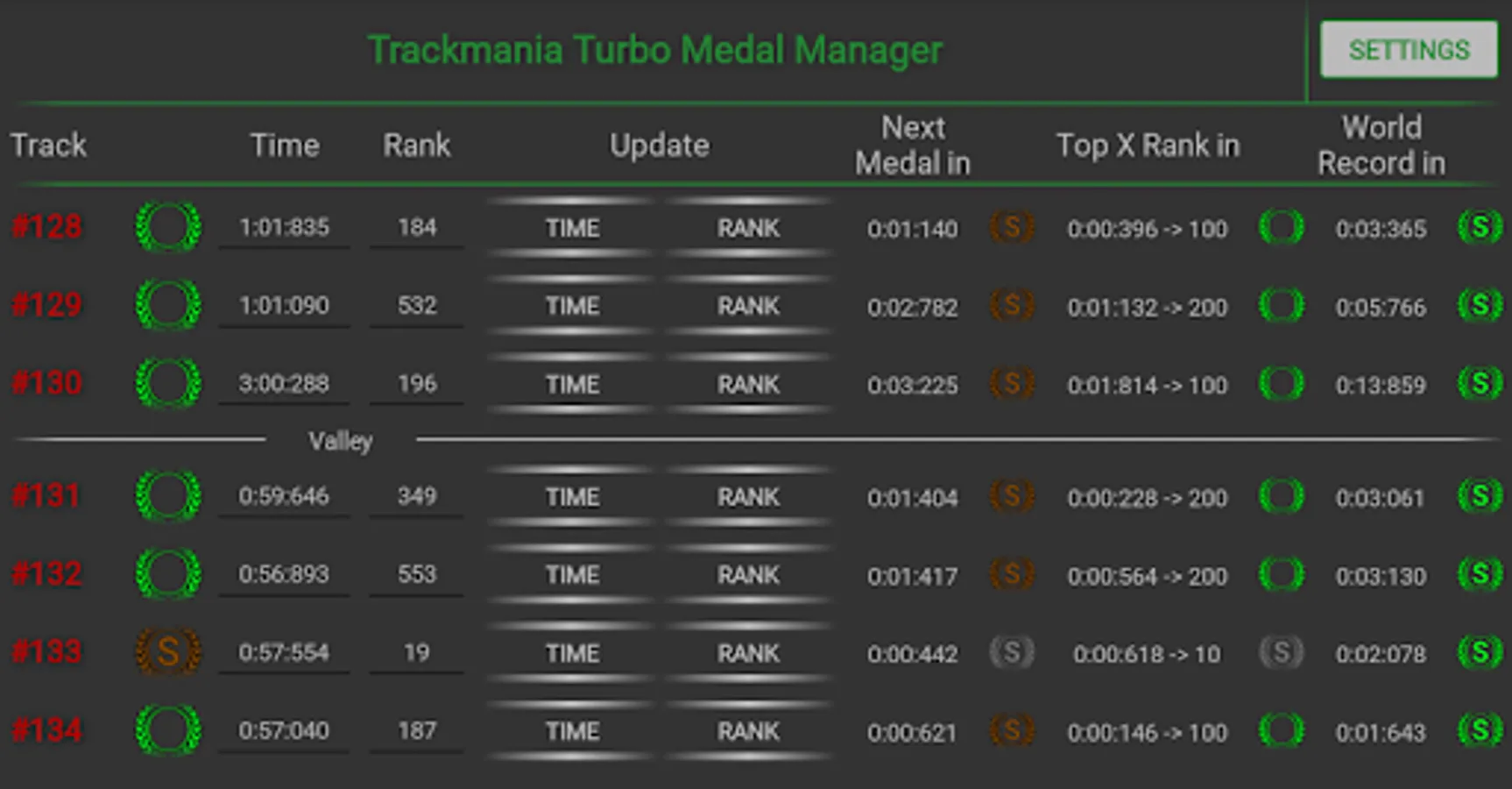 You are tired of looking up your exact times online? You are tired of not knowing how much of an improvement you need to rank up on a track? You just want to know what time you got on each individual track while being not in the game?