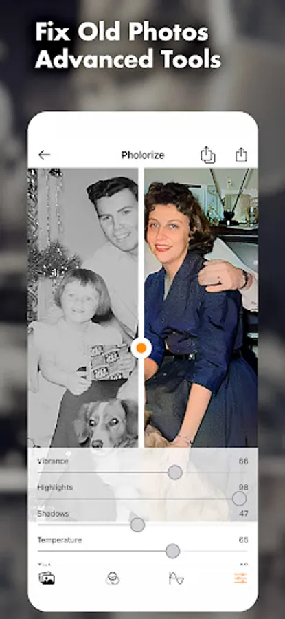 Get the taste of recent photo memories with Colorize App! Take your Black & White photographs and start colouring and restoring your old photos. Happy moments are guaranteed!