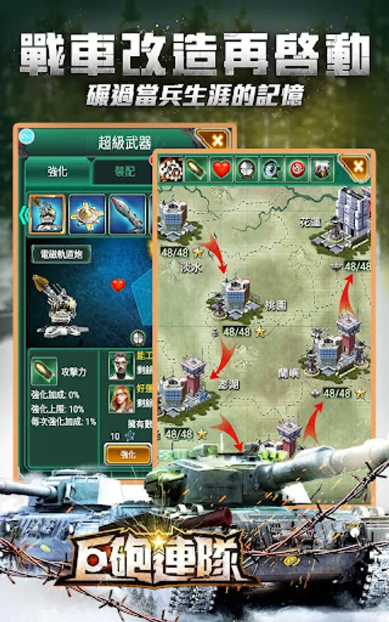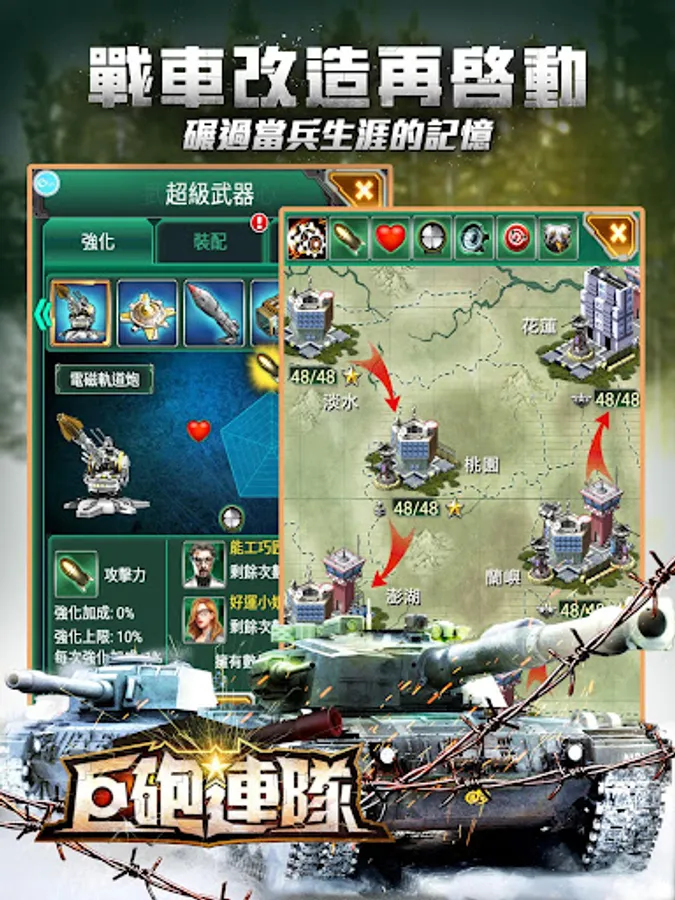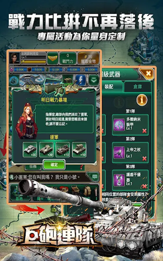 1.角色系統:不一樣的屬性提升,自主配比最強的裝甲部隊