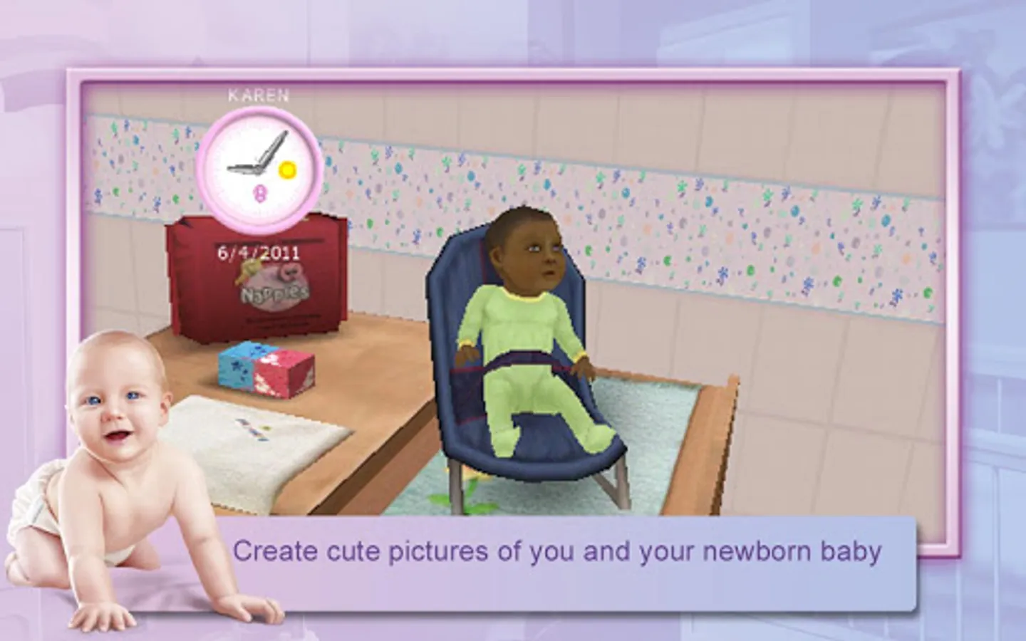 Suddenly you have a new arrival and there’s your little darling happily laughing at you. Now it’s down to you to do everything for them and make sure they want for nothing, thrive and grow bigger. Diaper-changing, bathing and feeding is all part of the job along with shopping, cooking meals and rocking your baby to sleep, as is dressing, cuddling and playing with them. Help your little cherub to crawl and walk and use the camera to take some great snaps of you and your little treasure.
