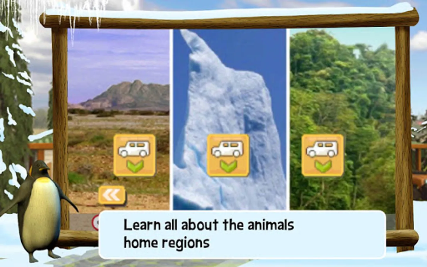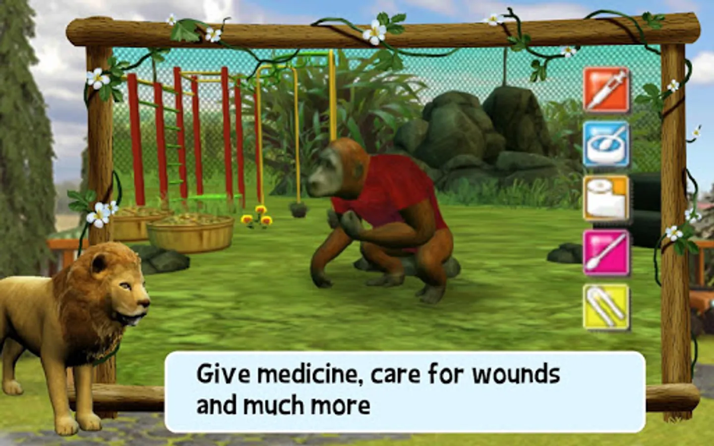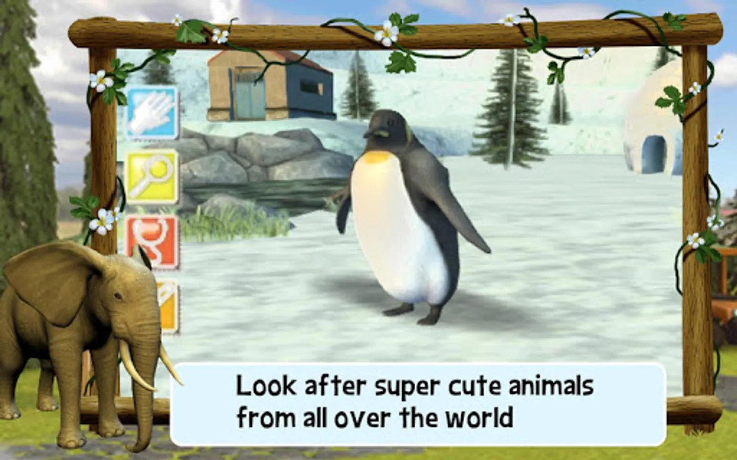 • Look after super cute animals from all over the world: Lion, Tiger, Polar Bear, Chimpanzee, Elephant, Giraffe, Orang-Utan, Seal and Penguin