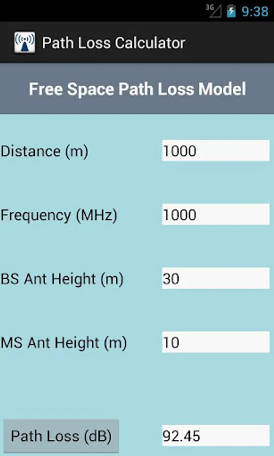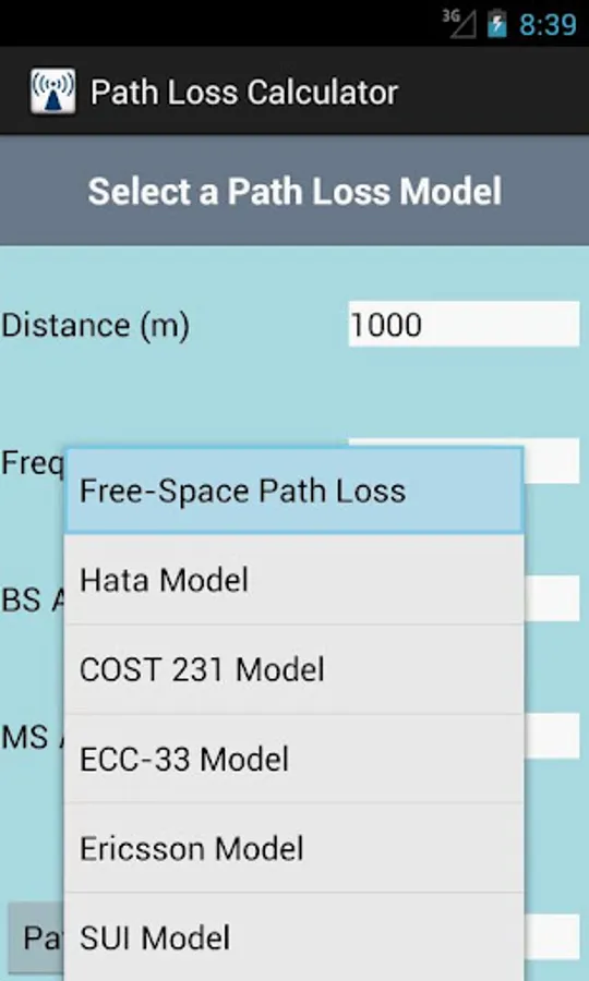 A simple application that can be used to calculate the Path Loss using one of the following six models.
