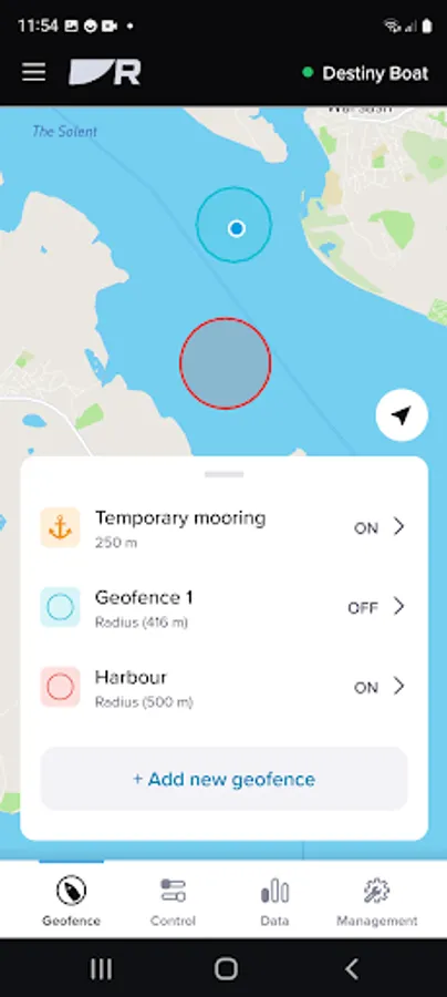 Use the Raymarine app and the YachtSense Link marine mobile router to monitor your boat remotely. A GeoFence feature provides alerts and notifications if your vessel moves in or outside a safety zone for peace of mind.