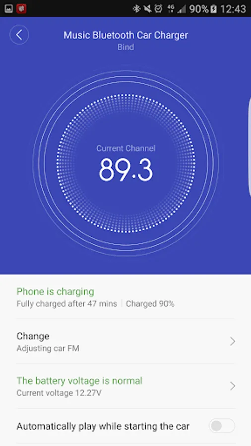 Connected to music Bluetooth car charger, providing fm music playing, exchange the song by shaking your phone and so on.