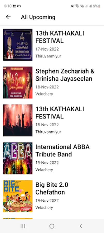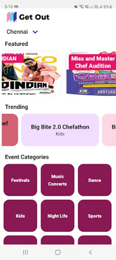 Get Out App has events listed in Chennai & Bangalore. Other cities are coming soon!