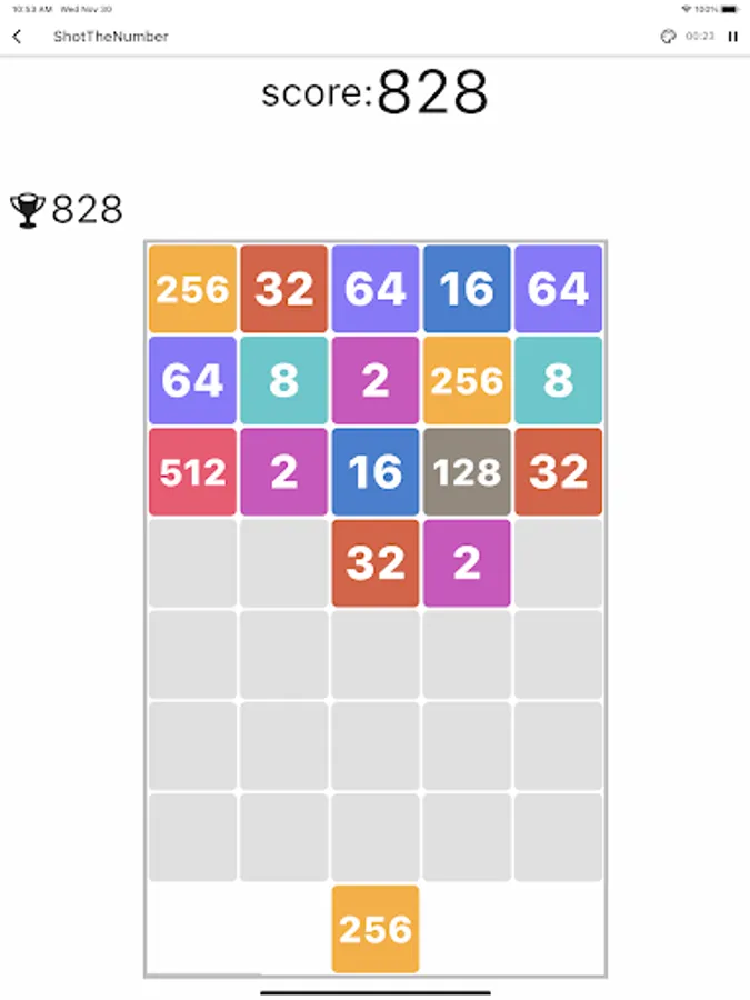 ShotNumber game is a game that changes the 2048 puzzle by shooting and combining numbers to make a bigger number.