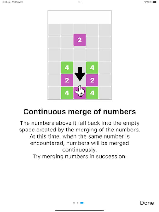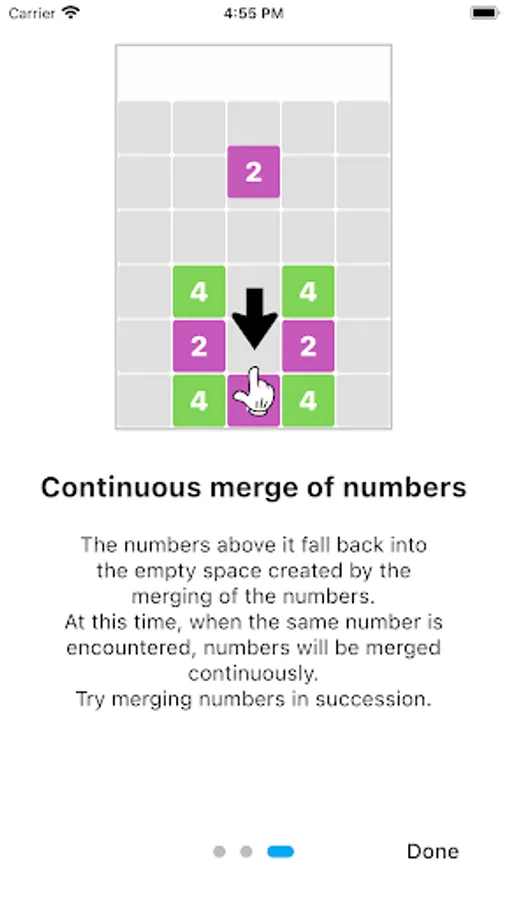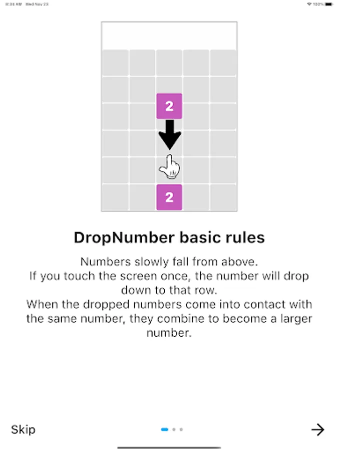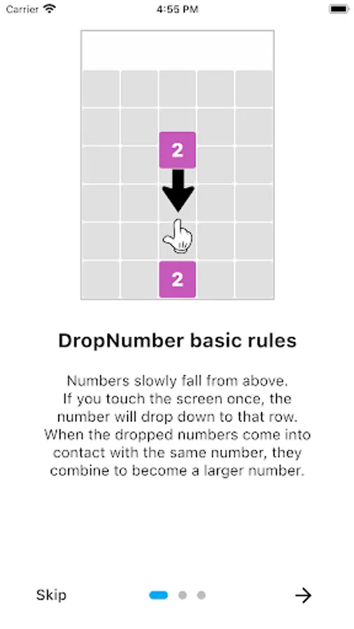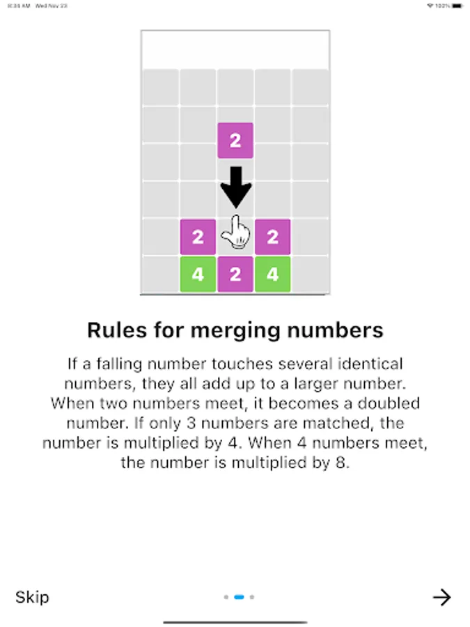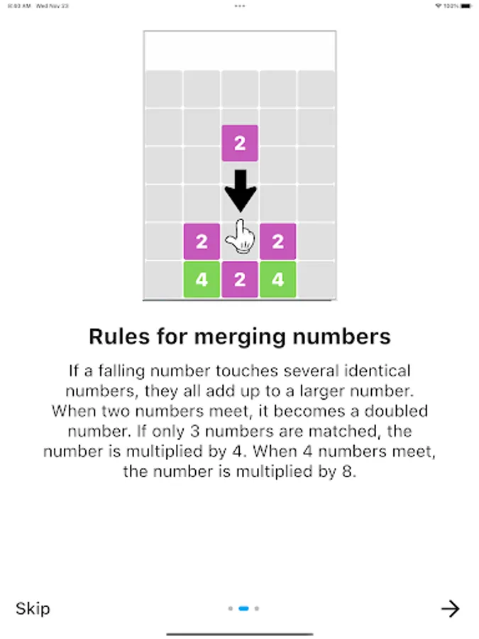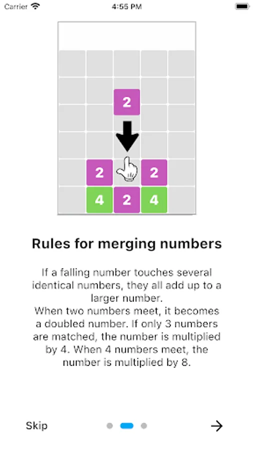 - When dropped numbers meet the same number, they are combined to make a bigger number.