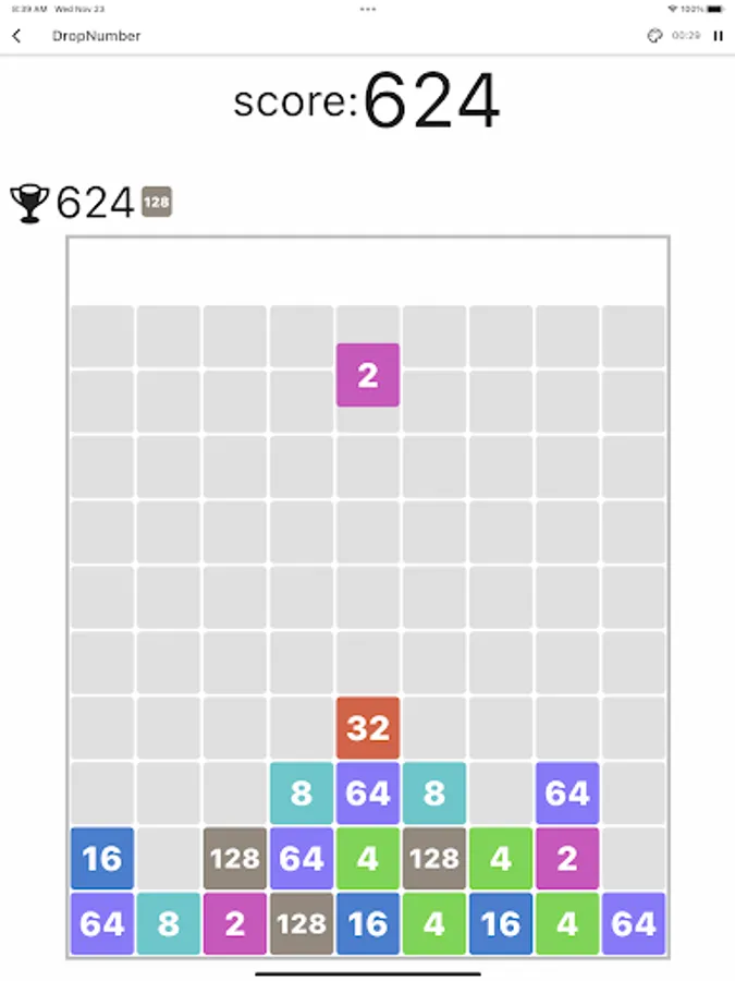 DropNumber game is a game that transforms the 2048 puzzle to make a bigger number by adding the falling numbers.