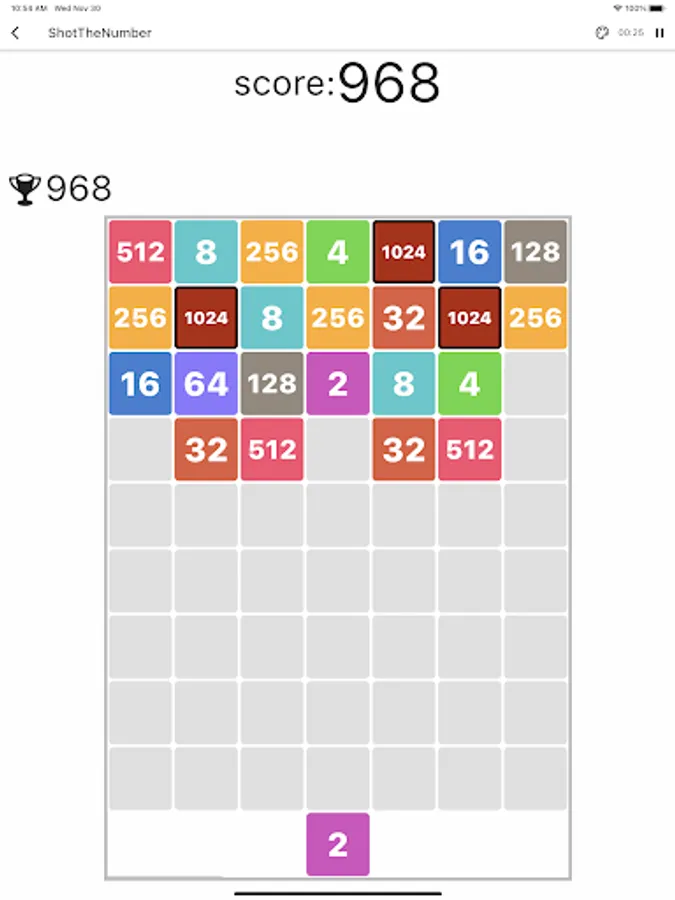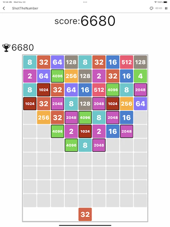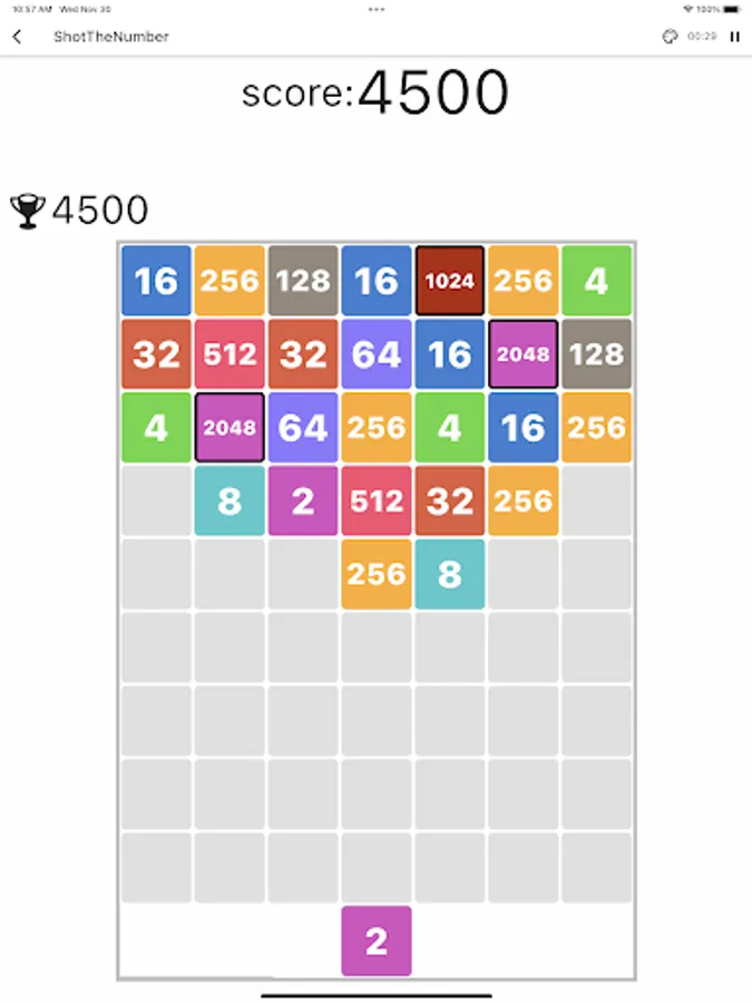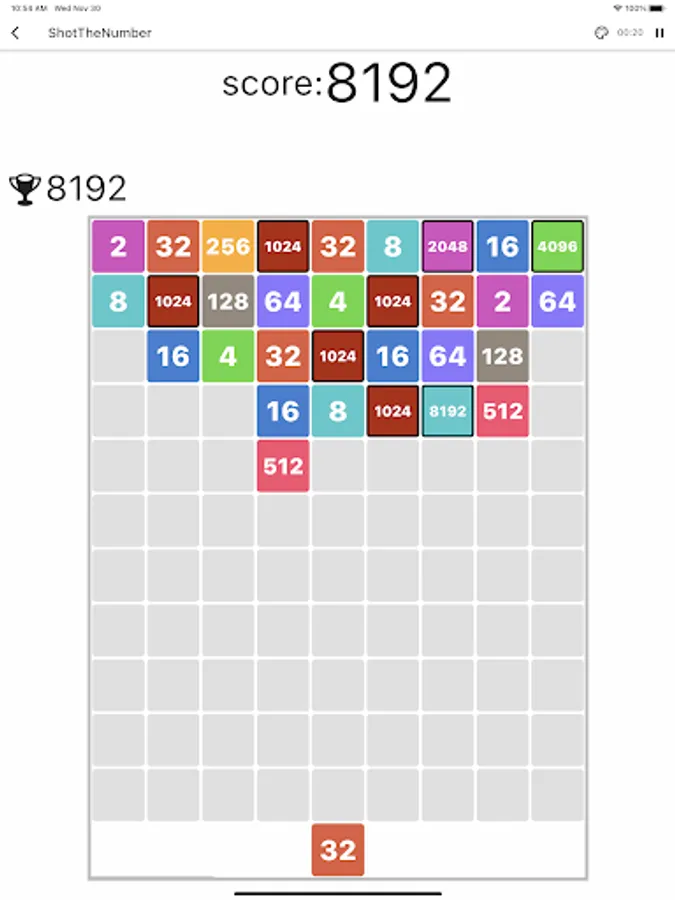 Shot the number is a game that changes the 2048 puzzle by shooting and combining numbers to make a bigger number.