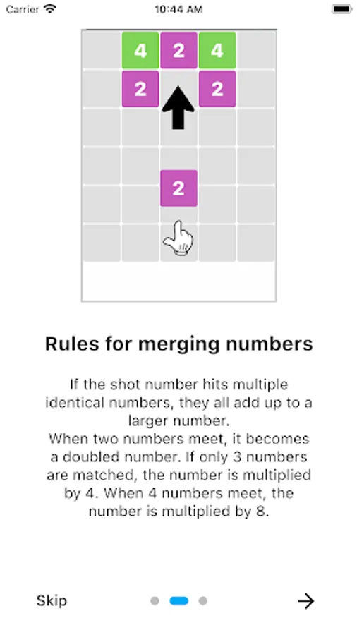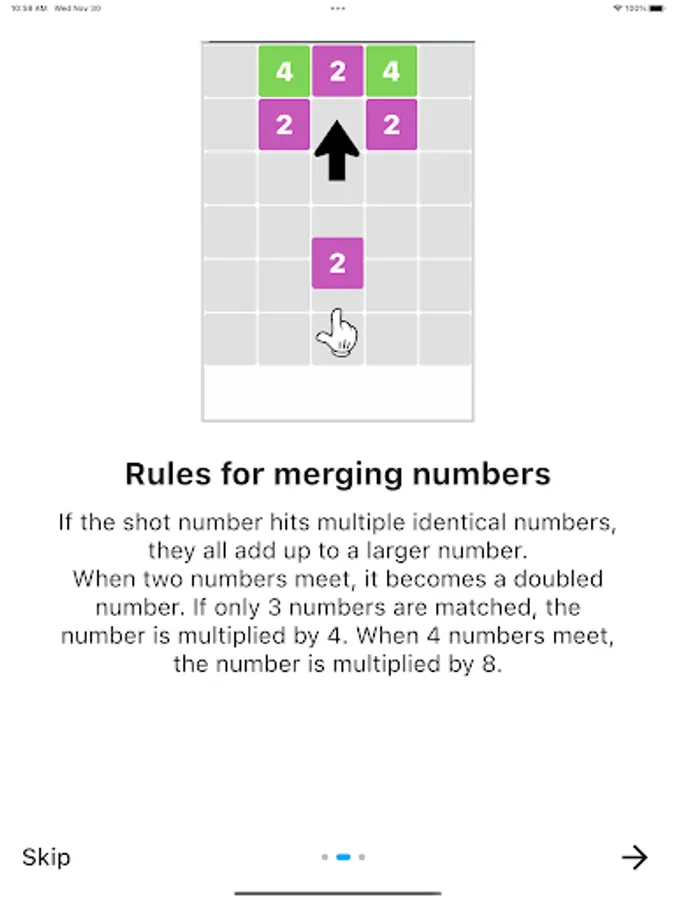 - When the numbers shot meet the same number, they are combined to make a bigger number.