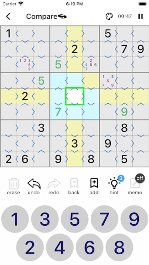 The cells that you should compare the numbers will be painted with different colors. It will help you to play games.