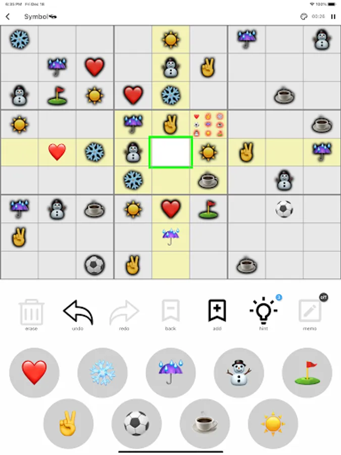 Hint function tells you the answer to a cell when you meet a difficult cell.