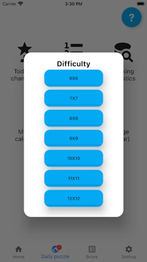 - You can choose a game level among 7 different levels (6x6 ~ 12x12)