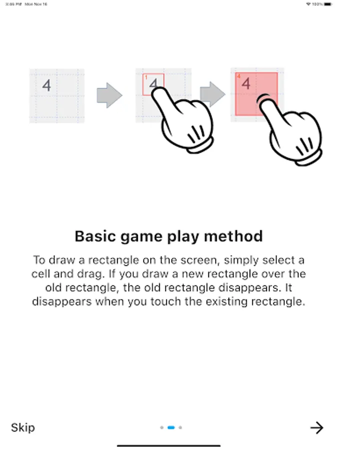 The objective is to divide the grid into rectangular and square pieces such that each piece contains exactly one number, and that number represents the area of the rectangle.