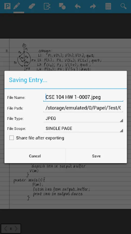 - Send your page and notebook to others or yourself using the Sharing feature which makes uses of applications already installed in your device