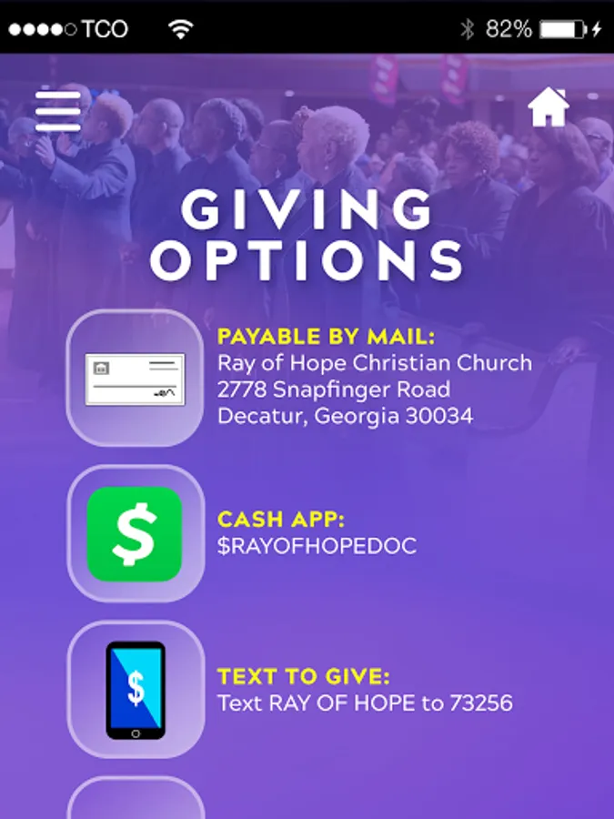 Download this FREE App today to connect with Ray of Hope Christian Church and experience our messages. Watch our services LIVE, and more. The Ray of Hope Christian Church App was created by The Church Online. of Hope Christian Church in 2778 Snapfinger Road Decatur, Georgia 30034