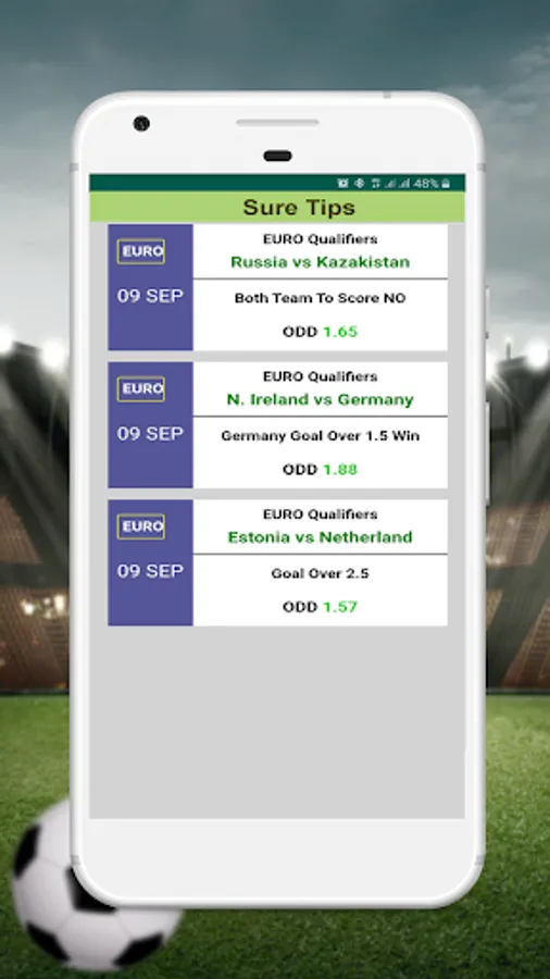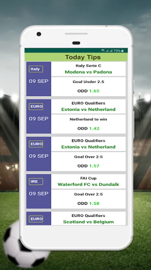 * 3 different sections such as Today Tips, High Odds, and Sure Tips all are updated regularly.