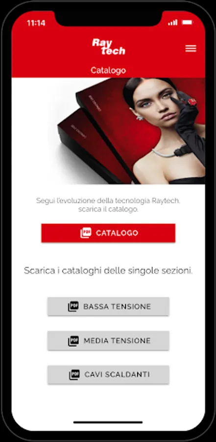 Among the other functions available there are sections to download updated catalogs, to contact and reach Raytech.
