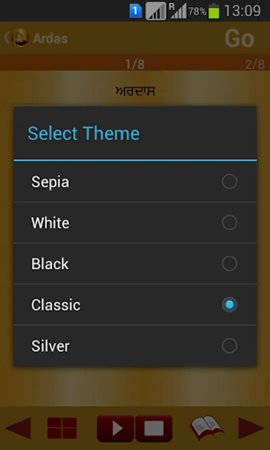# Select from 5 themes - Sepia, Classic, White, Black, Silver