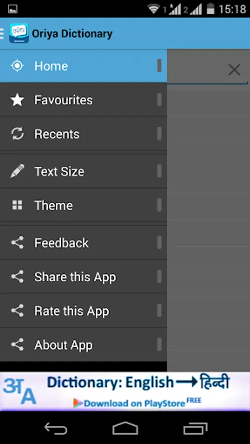 • Get more option by clicking on app icon on top of screen in English to Oriya Dictionary Free Offline app: -