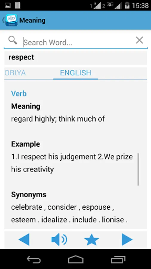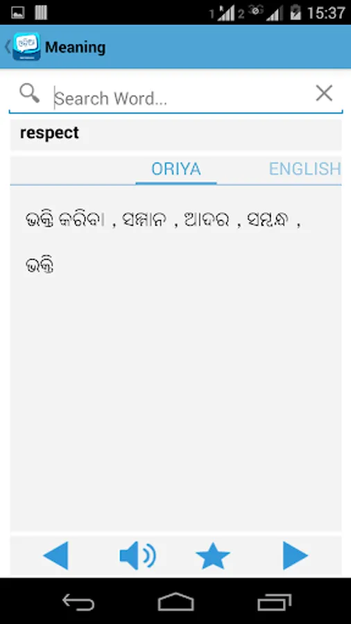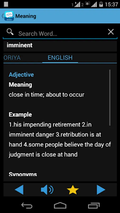 • 'With Meaning': Read word meaning in both Oriya and English. Also read synonyms, antonyms and similar words
