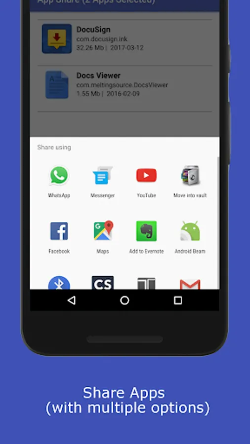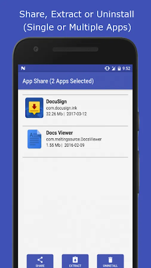 This app lets you easily share apps to your friends, extract apk file to your phone and uninstall apps from your phone.
