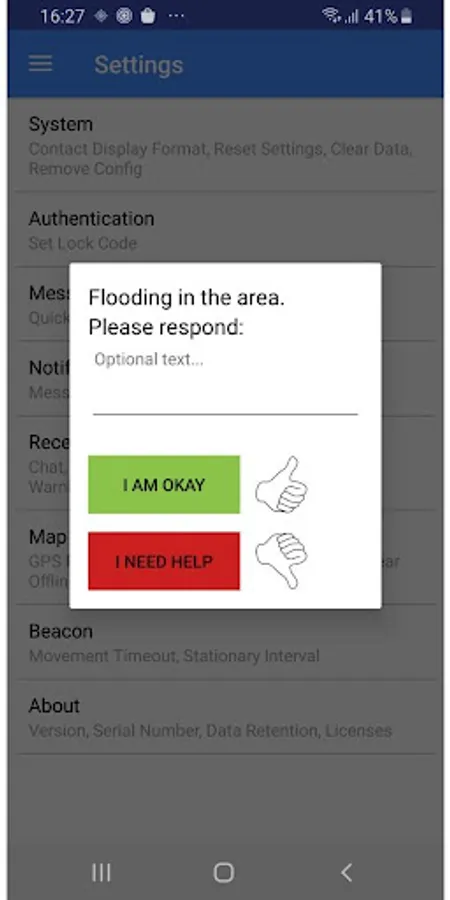 - Emergency Alert: Allows the user to initiate an emergency alert status.