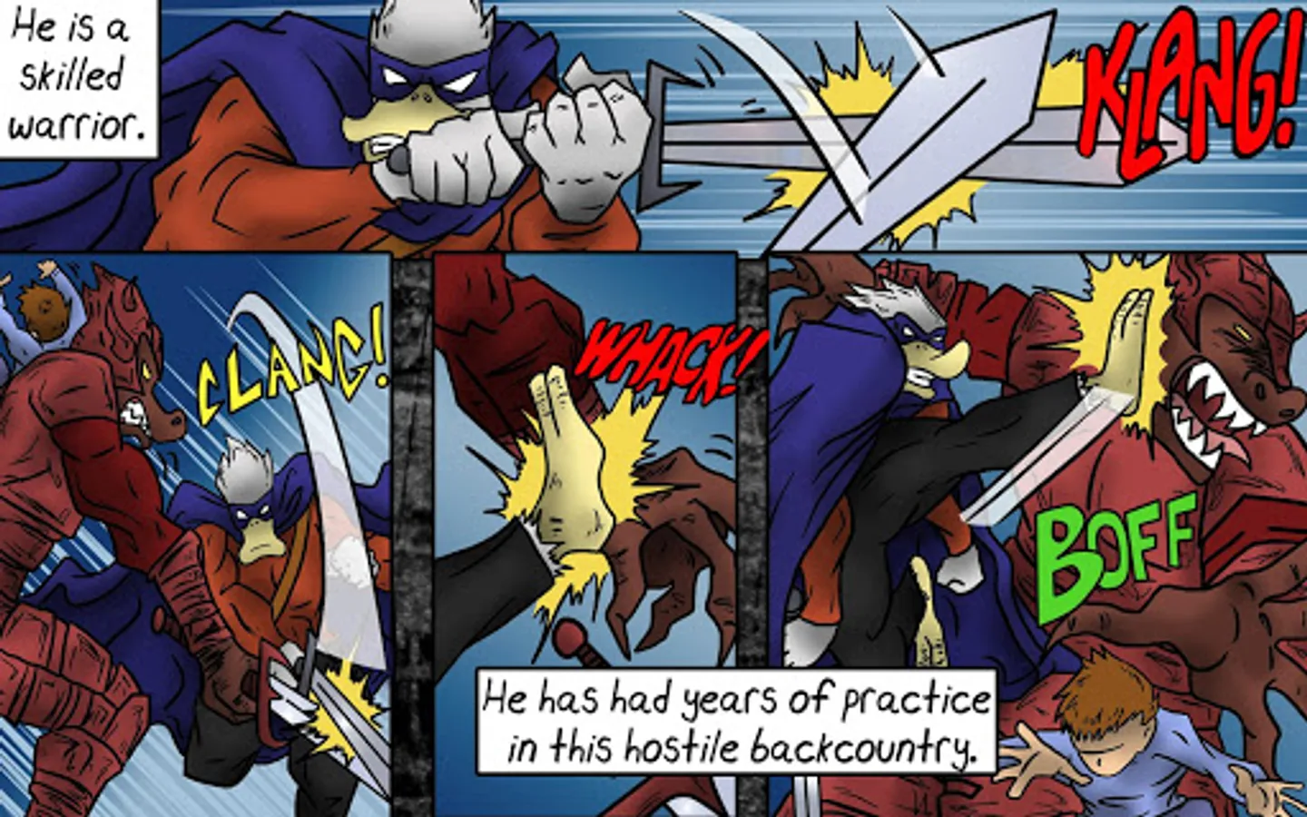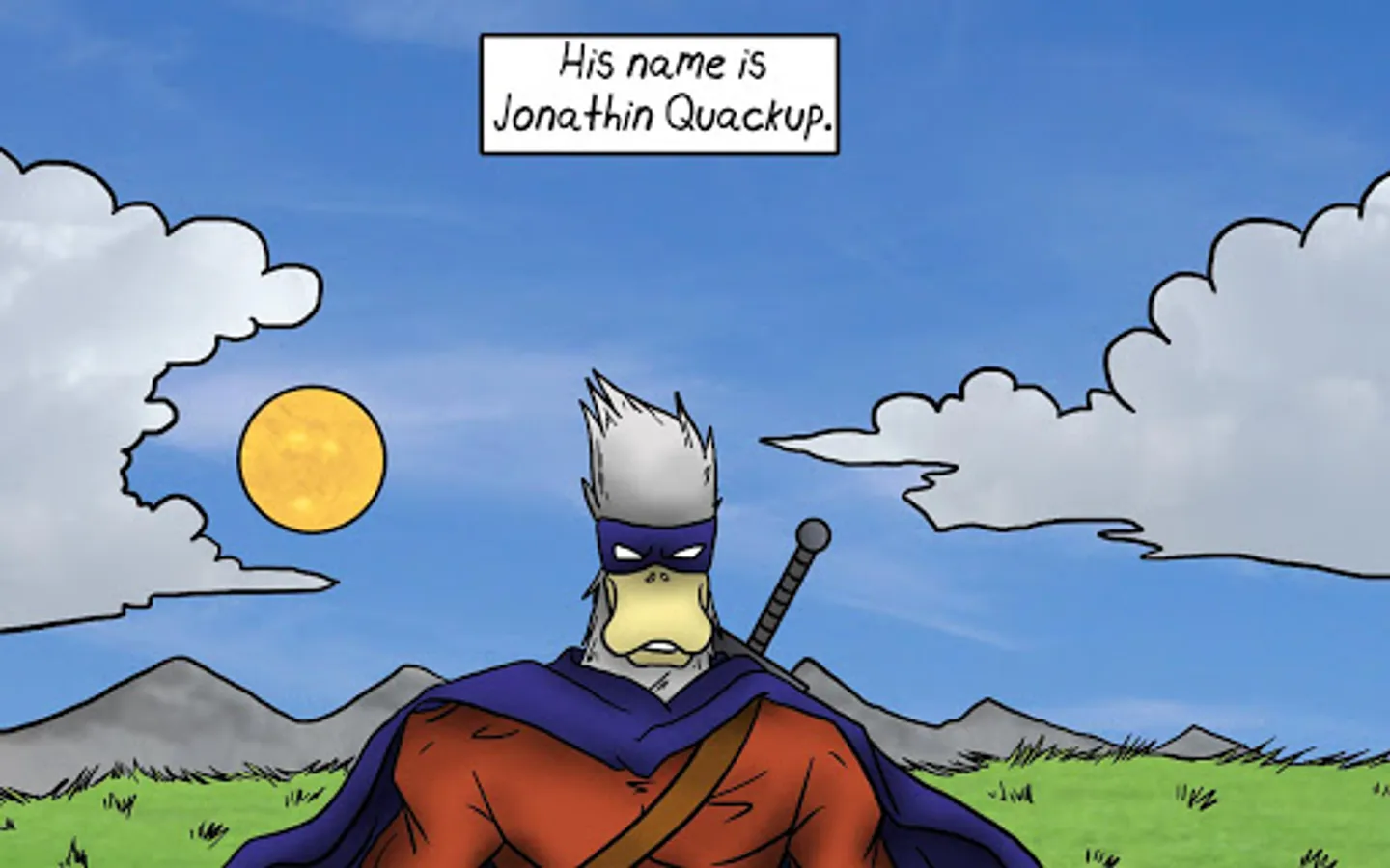 The comic series begins over a thousand years after the Quacki disappear and introduces us to the main character of Jonathin Quackup. Jonathin Quackup has spent around 5 years of his life wandering the lands (between the Pelishtee and Human borders) protecting the the peoples from all sorts of villains and monsters.