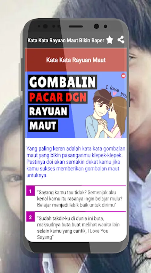 In this application it is very complete and there are lots of super duper words that can make the heart of anyone who gombalinnya difficult.