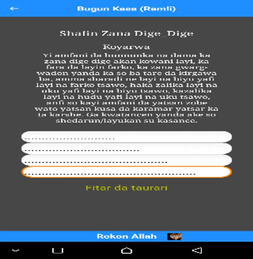 Kowani irin mutum zai iya amfani da manhajar (app) din ko bai san komai a sha'anin ilimin ramli ba domin yayi bincike akan wata damuwar sa.