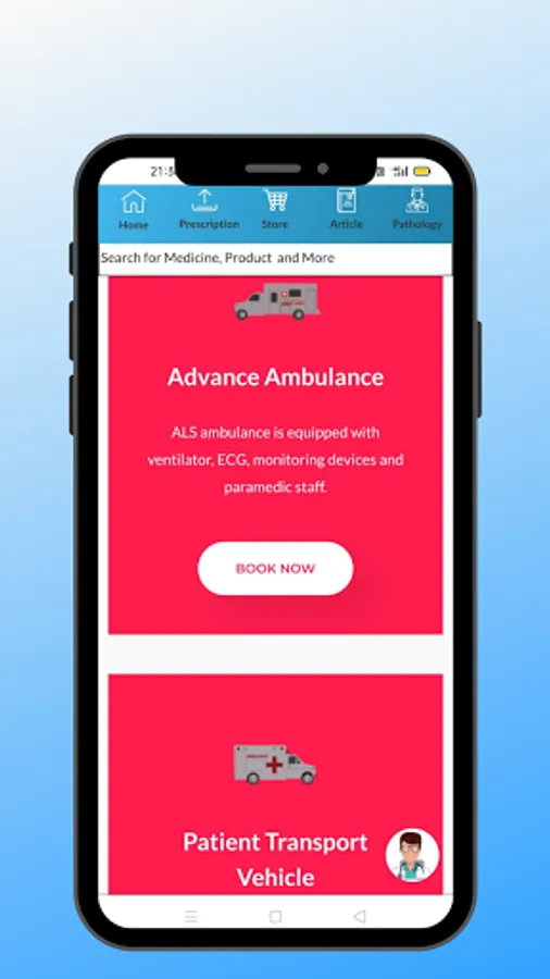 We provide medical essentials and medicines at your door step including Pathology booking lab test booking, Ambulance Booking , Homeopathic Medicines,Physiotherapy and various other.