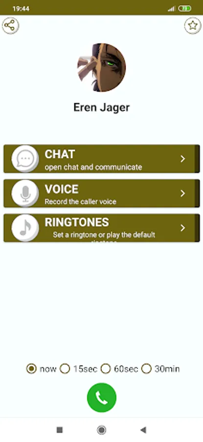 after the interval you set. a simulator screen calls from Eren Jager will be switched on with the ringtone and vibration. you need to do is pick up or shutdown.