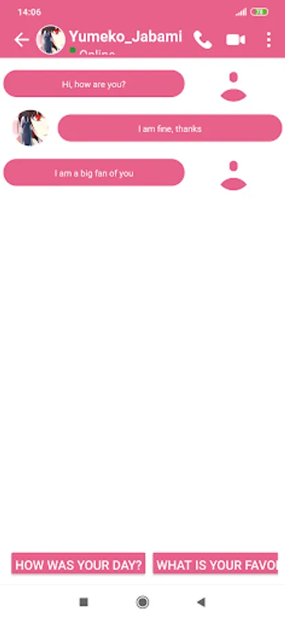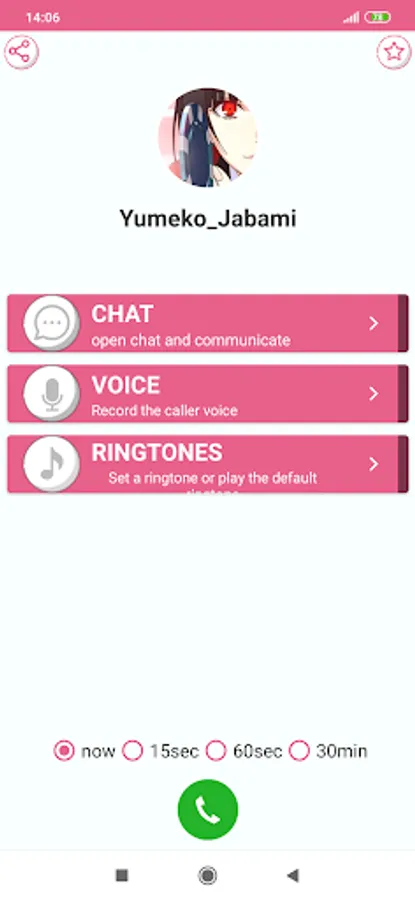 after the interval you set. a simulator screen calls from Yumeko Jabami will be switched on with the ringtone and vibration. you need to do is pick up or shutdown.