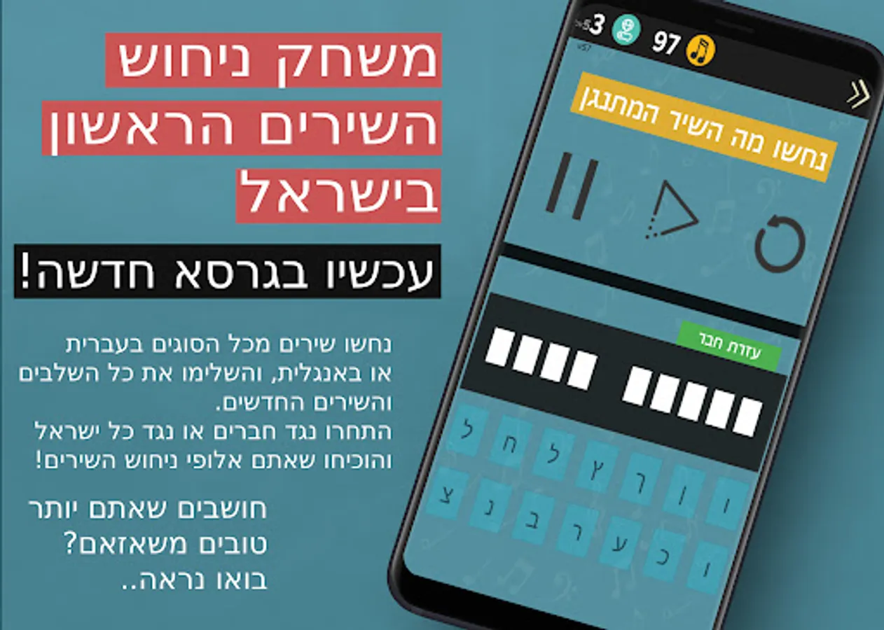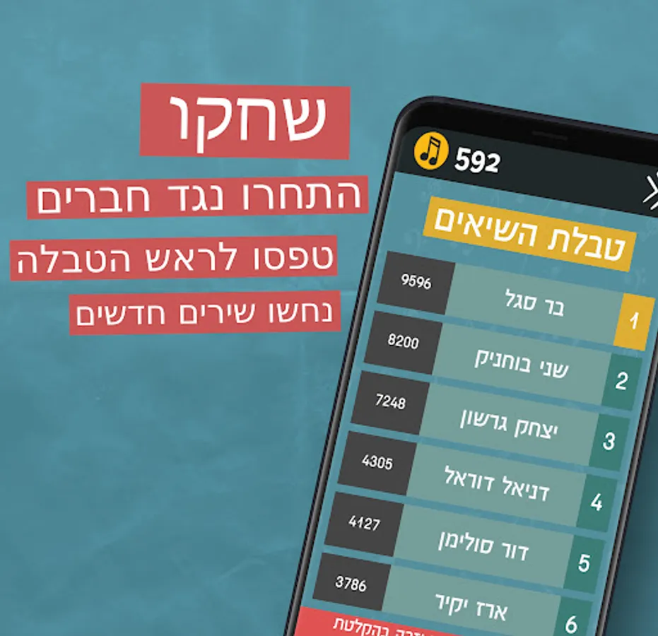 - Climb the various ranks and compete against people at your level, until you become the champions of Israel's song guessing!
