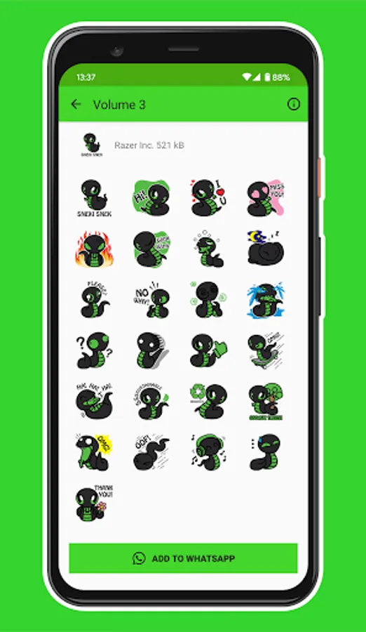 Ssssupport our initiative and spread the message of ssssaving trees with Sneki Snek by downloading the Razer Sneki Snek WhatsApp Stickers.