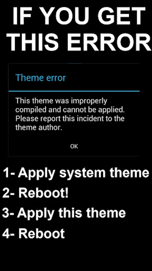 Install the app, go to settings/themes of your ROM, select system theme and REBOOT. After that apply this theme and reboot again.