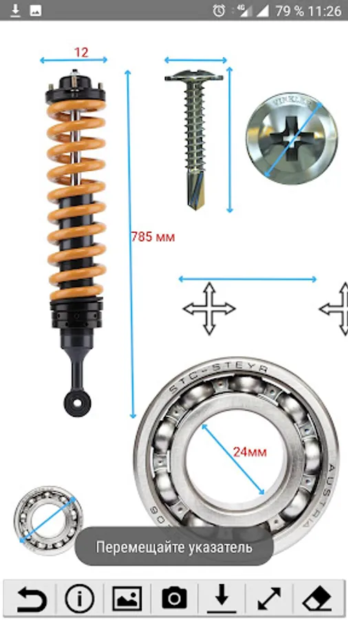 Appendix drawing size on downloaded or removed at the camera image. You can make quick measurements and save the gallery.