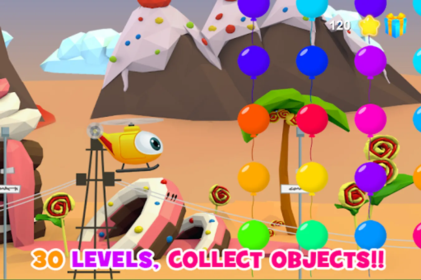 Fireworks, Balloon pop are at the end of each level so your child can collect more stars, and unlock new planes.