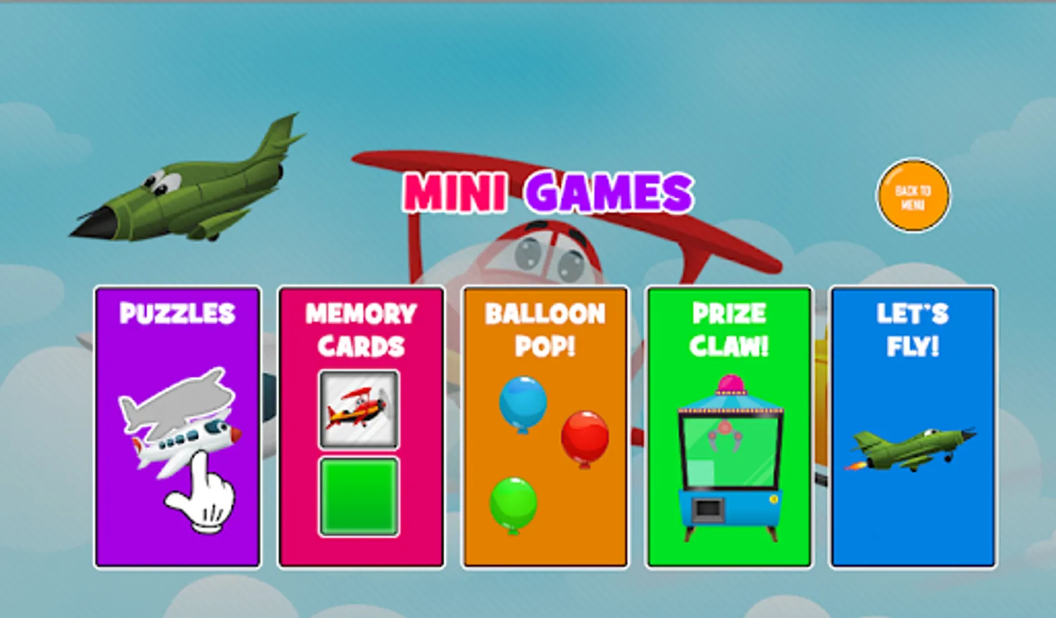 Fun kids plane game helps your child understand the educational mechanics of using mobile and tablet devices. With puzzles, memory card and heaps of fun flying through the courses.