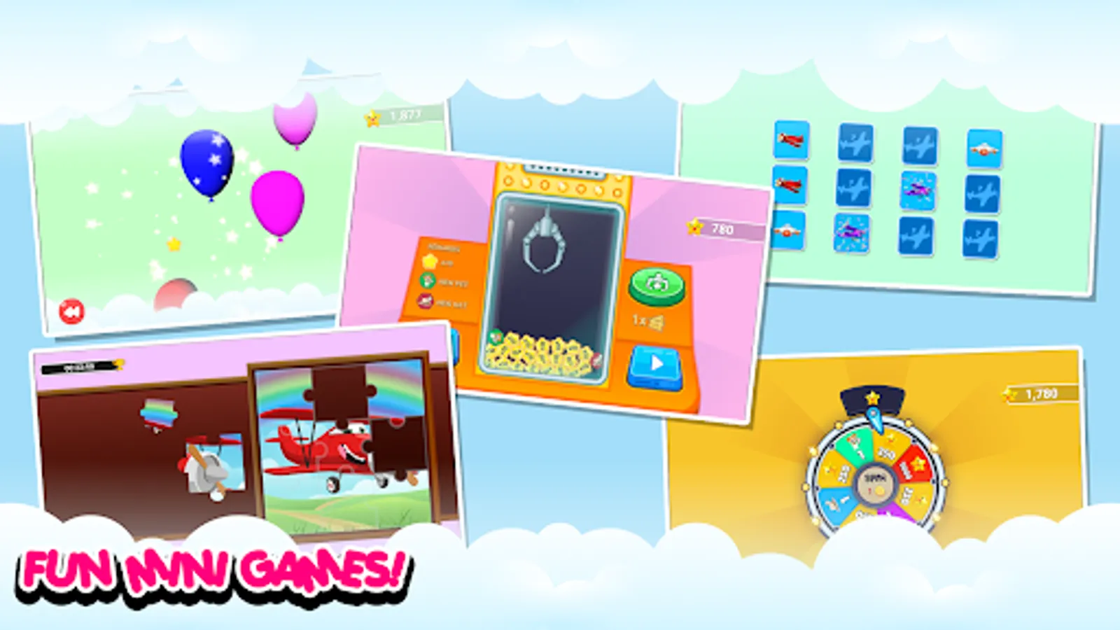 Fun Kids Planes 2 Game helps your child understand the educational mechanics of using mobile and tablet devices. with puzzles, memory card and heaps of fun aeroplane racing action.