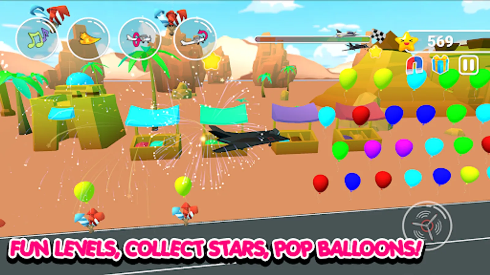 * Cute Planes with eyes, vibrant graphics and funny sounds