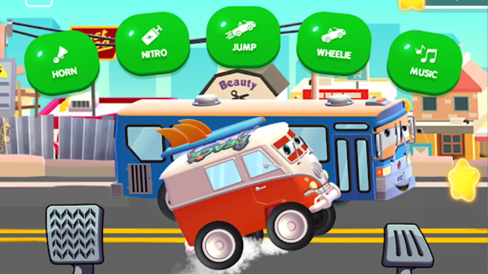 If your children loves all things cars, then this game is for them! simple navigation in the game, with a selection of big buttons on the screen to make the car do funny and cute things like jumping, wheelie, cute horn sounds, nitro and more. all with fun sounds and music to keep your toddler entertained for hours.